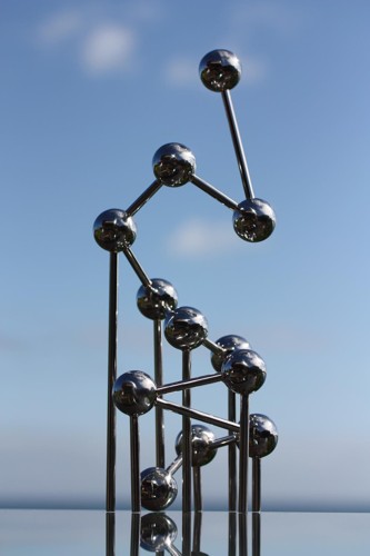The Sky Sculpture SOUL 3 The floating Sky Sculpture SOUL rises out of the water and disappears in the sky. Total height 14m, over water 11.75m, under water 2.25 m, spheres 1m. |