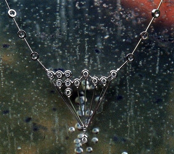 Menu HomeGolden Art TodayMasterworksThe ArtistContactOeuvre d’Email Masterworks 1960 - 1969 1 | Earrings, Sea Horses, White Gold, Diamonds, Sapphires, 1966 27 | Bracelet, Dew Drips, White Gold, Diamonds, 1968 30 | Necklace, The Happyness, Gold, Diamonds, Drawn Wire Work, Model: Ute Achenbach-Peters, DIAMOND INTERNATIONAL AWARD, NEW YORK 1967 32 | Earrings, One Thousand And One Night, Diamonds, White Gold, Diamonds, Toumalines, Variation, DIAMOND INTERNATIONAL AWARD, New York 1967 35 | Bracelet, Summer Night Dream, Gold, Diamonds, Rubies, Emeralds, Drawn Wire Work, DIAMOND INTERNATIONAL AWARD, MEMBER OF THE DIAMONDS INTERNATIONAL ACADEMY, NEW YORK 1968 36 | Earrings, Mobile, Weißgold, Diamonds, Tourmalines, Kinetic, DIAMOND INTERNATIONAL AWARD, NEW YORK 1965, as an Art Student 37 | Brooch, Gold, Silver, Diamond, Rubies, Weld Etch Work, Taurus 196 39 | Brooch, Gold, Diamond, Ruby, Taurus 1968 49 | Necklace, Longing, Gold, Tourmalines, Transparent Jewellery, 1969 59 | Necklace, Opal Luck, Gold, Silver, Opals, Diamonds, Weld Etch Work, German Lexicon under Goldsmith Art, 1969 80 | Necklace, The Dream, Gold, Diamonds, Rubies, Drawn Wire Work, 1969 25 | Brooche The Peacock, White Gold, Diamonds, Rubies, Emeralds, Turn Art, DIAMONDS INTERNATIONAL AWARD, New York 1967 chalice, silver, amethyst, German Apprenticeship Award Headstone for the grandparents Monstrance, acrylic glass, a jour enamal disc, gold plated, by late Ute Achenbach-Peters patented candlestick, for 1-5 candles candle stick, silver gold plated, Werkkunstschule Duessldorf, Examination Candlestick for different candles, patented 1970 - 1979 53 | Bracelet, Crystal Life, Gold, Rock Crystal Op Stones, Op Art 1975 43 | Ring, DIAMOND TURN, White Gold, Diamonds, Kinetic, German Diamond Award 1975 90 | Brooch, Dancing, Gold, Ruby, Drawn Wire Work, Pair 1979 44 | Brooch, White Gold, Pearls, Diamond, Ruby, Fire Opal, Pair 1977 28 | Necklace, Diamond Lights, Whitegold, Diamonds, DIAMOND ART 1971 29 | Necklace, Diamond Trembling, Gold, Diamonds, Kinetic: Vibration, DIAMOND WORLD COLLECTION, 1978 40 | Brooch, Gold, Copper, Ferrochrome, Taurus 1979 42 | Brooch, Gold, Silver, Diamond, Weld Etch Work, Taurus 1970 45 | Lovering, White Gold, Diamond, Turn Art, German Diamond Award 1973 46 | Brooch, The Night, White Gold, Opals, Diamond, Kinetic, 1970 50 | Chain, Twins, White Gold, Twin Pearls, Japanese Award 1979 52 | Pendant, Life, Gold, Life Stones ( Gallstones) Diamonds, Golden Personality, 1976 54 | Ring, Light Grapes, White Gold, Diamonds, Reflection, German Diamond Award 1974 56 | Necklace, Goldcocoon, Gold, Drawn Wire Work, 1973 57 | Bracelet, Goldcocoon, Gold, Drawn Wire Work, 1972 72 | Necklace, Tourmaline Fire, White Gold, Tourmalines, Transparent Jewellery, 1970 73 | Necklace, Moving, White Gold, Diamonds, Sapphire, Kinetik, 1970 74 | Brooch, Kinetic Flower, White Gold, Diamonds, Rubies, Kinetic: Rolling Stones, 1972 76 | Chain, Ball Bearing, Gold, Kinetic, German Staat Awards 1977 and 1978 77 | Chain, Eyes, Gold, Diamonds, Kinetic German Diamond Awerd 1977 78 | Brooch, Diamond Snake, White Gold, Diamonds, Variation, German Diamond Award 1977 79 | Necklace, Triumph, Gold, Drawn Wire Work, 1975 81 | Necklace, Fire on Ice, Gold, Diamonds, Rubies, Drawn Wire Work, 1976 82 | Brooch, Dragon Fly, White Gold, Diamonds, Rubies, Diamond Art 1974 83 | Chain, Golden Eyes, Gold, Rock Crystal Op Stones, Kinetic, Op Art, 1977 84 | Bangle, Red Eyes, White Gold, Moon Stones, Ruby Balls, Kinetik, Op Art, 1975 89 | Brooch, Gold, Fire Opal, Golden Positive, Skarabeus 1978 1970 Golden Sculpture, Femina, wire tensioning work, German TV info 1973 The Queen and the King, chess pieces, gold rock crystals, Op Art, World Award 1978 the Pied Piper Fountain of Hameln, awarded model 1975 sculpture, Schnappcock, silver, galvanized gallstone as life stone, gold plated, turn able 1978 miniature, the Green Eye, oak, rock crystal, green glass clicker, silver gold plated Op Art Kinetic 1980 - 1989 6 | Brooch, Sailing, Yellow-, White-, Red Gold, Diamonds, Ruby, Emerald, Agathe, 1988 2 | Brooches, Pair 86, Yellow-, White Gold, Diamonds, Sapphires, Emeralds, Ruby, 1986 3 | Brooch, Snipe and Shell, Gold, Silver, Cupper, Ferrochrome, Diamond, Pearl, Golden Poetry, 1984 5 | Brooch, Pyramide Reflection, White Gold, Diamonds, Ruby, Op Art, 1989 38 | Necklace, Gold, Silver, Copper, Ferrochrome, Diamond, Taurus 1980 58 | Rings, Fingers, Gold, different Agates, Golden Personality 1981 70 | Brooch, Illusion, Gold, Rock Crystal Op Stones, Rubies, Op Art 1988 71 | Brooch, Kiss Me, Gold, Diamond, Wing Pearls, Golden Personality, 1988 91 | Necklace, Moonscape, Gold, Ferrochrome, 1980 92 | Pendant, Op Flower, Gold, Rock Crystal Op Stone, Ruby, Golden Personality, Op Art, 1981 93 | Brooch, Golden Heart, Gold, Silver, Tourmaline, Diamond, Ruby, Fine Gold a` jour, 1982 94 | Brooch, Love Saying, Gold, Silver, Opal Agate, Wing Pearls, 1983 95 | Brooch, Eye and Ear, Gold, Silver, Opal, Diamond, Ruby, Lady Beetle, Rock Crystal, Pair 1984 96 | Brooch, Gold, Silver, Ruby, Wing Pearls, The Little Prince 1985, Golden Poetry 1990 - 1999 97 | Brooch, Over the Clouds, Gold, Silver, Wing Pearls, Ruby, Diamond, Vom Fliegen 1998 12 | Brooch, Liberty, Gold, Diamonds, Braille Art, 1996 13 | Brooch, Magic Square, White Gold, Diamonds, Onyxes, Carnelian, Turn Art, DIAMONDS INTERNATIONAL AWARD, Paris 1990 4 | Brooches, Life in the River, Gold, River Stones, Diamonds, Emerald, Philosopher's Stone, 1990 8 | Brooch, Pearl Wheel, Gold, Pearls, Kinetic, 1992 7 | Brooch, 25 Years, Gold-, White-, Red Gold, Diamonds, Kinetic: Rolling Stones,1991 9 | Brooch, Dream Travel, Gold, Silver, Diamonds, Emeralds, Rubies, Sapphires, Opals, 1993 10 | Brooch, Bridal Couple, Gold, Silver, Opals, Diamonds, Onyxes, 1994 11 | Brooch, Leaf Stories, Gold, Silver, Diamonds, Ruby, Golden Positive, 1995 41 | Brooch, White Gold, Piece of Shell, Diamond, Ocean Art, Taurus 1996 51 | Brooches, Thanks Sisters, Yellow-, White-, Red Gold, Dia